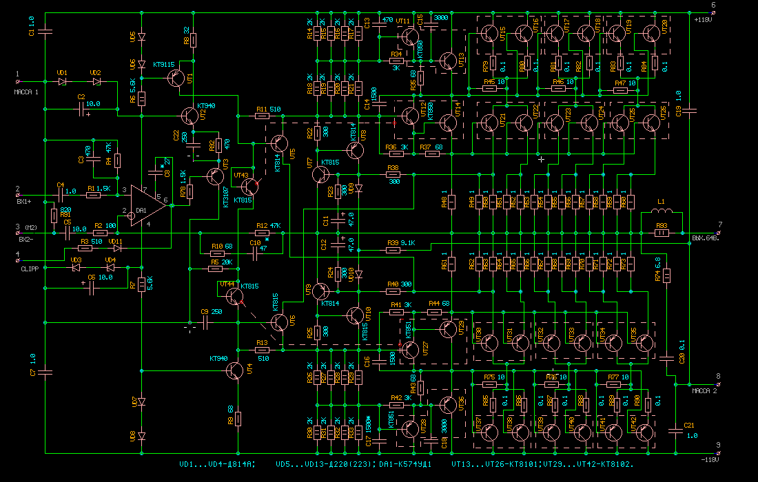 Усилитель SK-2,4/2. Схема одного канала УМ